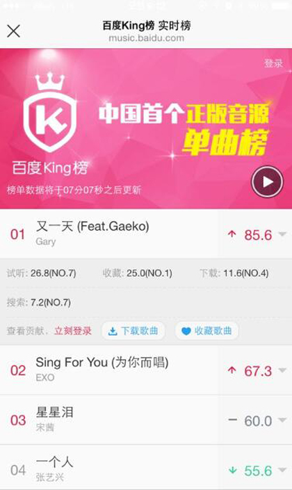 Leessang的成员Gary(姜熙健)的新歌曲《又一天》在4日在百度King榜获得了第一位。